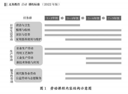 圍繞日常生活勞動、生產(chǎn)勞動和服務(wù)性勞動,根據(jù)學(xué)生經(jīng)驗基礎(chǔ) 和發(fā)展需要,以勞動項目為載體,以勞動任務(wù)群為基本單元,以學(xué)生 經(jīng)歷體驗勞動過程為基本要求,構(gòu)建覆 蓋三類勞動,學(xué)段 進階安排、有所側(cè)重的課程結(jié)構(gòu)。