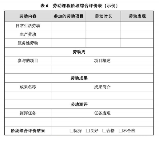 勞動課程階段綜合評價是學(xué)期、學(xué)年或?qū)W段結(jié)束時進行的綜合評價,反映學(xué)生勞動課程學(xué)習(xí)的水平和核心素養(yǎng)的階段性達成情況。